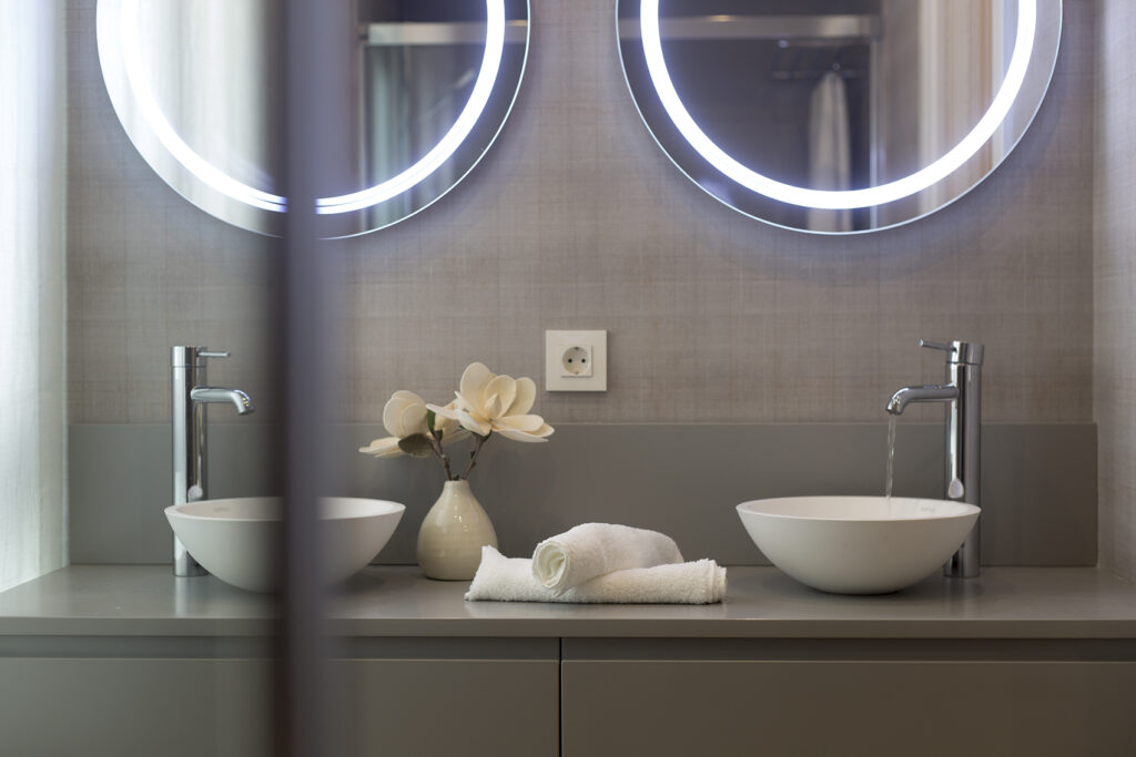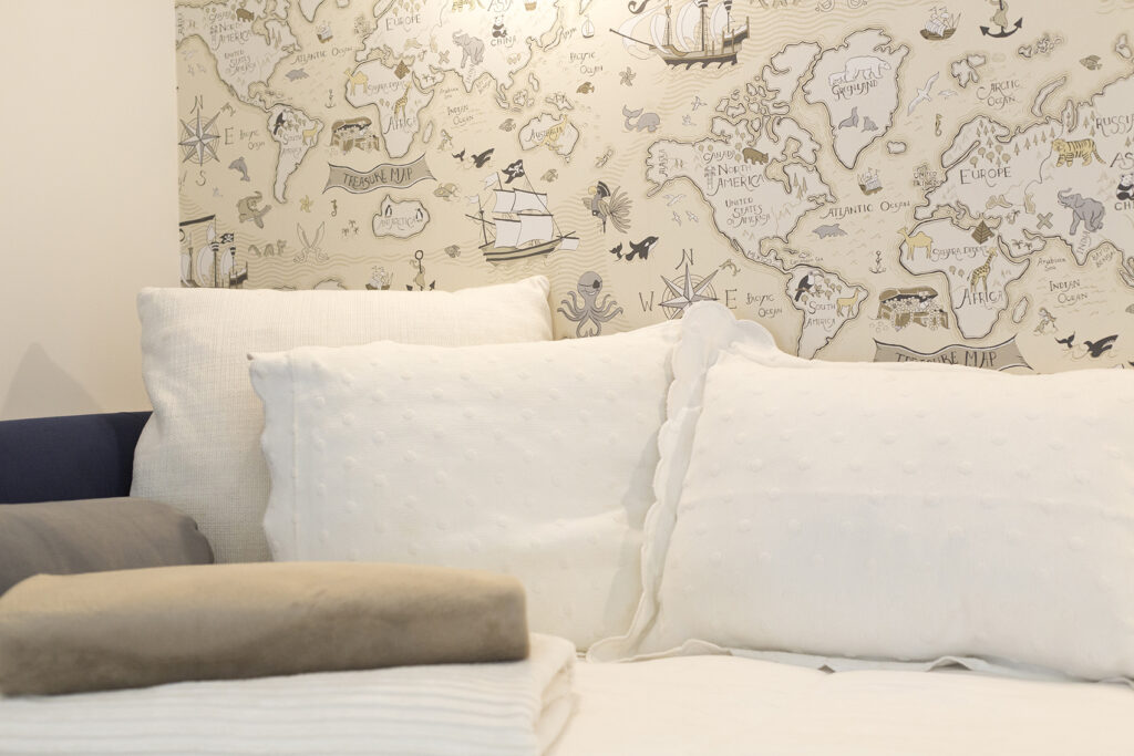 El resto de la vivienda se reformuló para sacar todo el potencial a la luz natural. Las antiguas habitaciones interiores se abrieron, se eliminaron tabiques y se consiguió que cada estancia tuviera más de una ventana, incluso los baños. Se diseñaron zonas de noche muy bien resueltas: un dormitorio principal con baño y vestidor, una habitación doble con baño privado para los gemelos, y una habitación de invitados.
