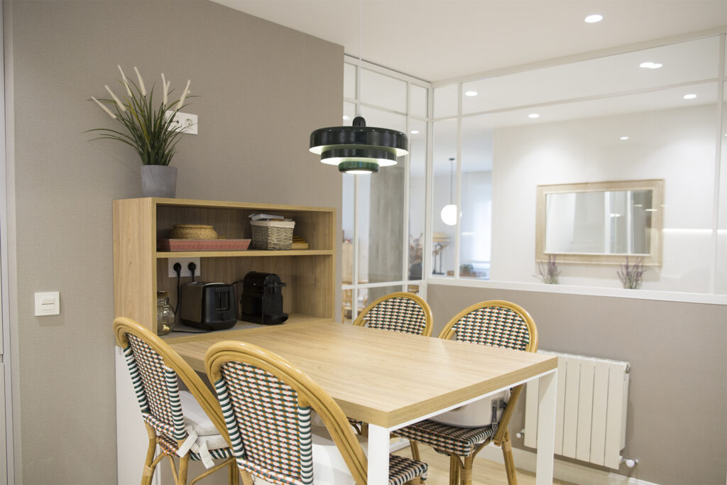 El objetivo fue claro desde el principio: crear espacios amplios y bien conectados, donde toda la familia pudiera estar cerca y compartir. Para conseguirlo, tiramos varios tabiques, cerramos una segunda puerta de servicio y eliminamos pasillos, lo que nos permitió ampliar los dos espacios principales: la cocina y el salón.